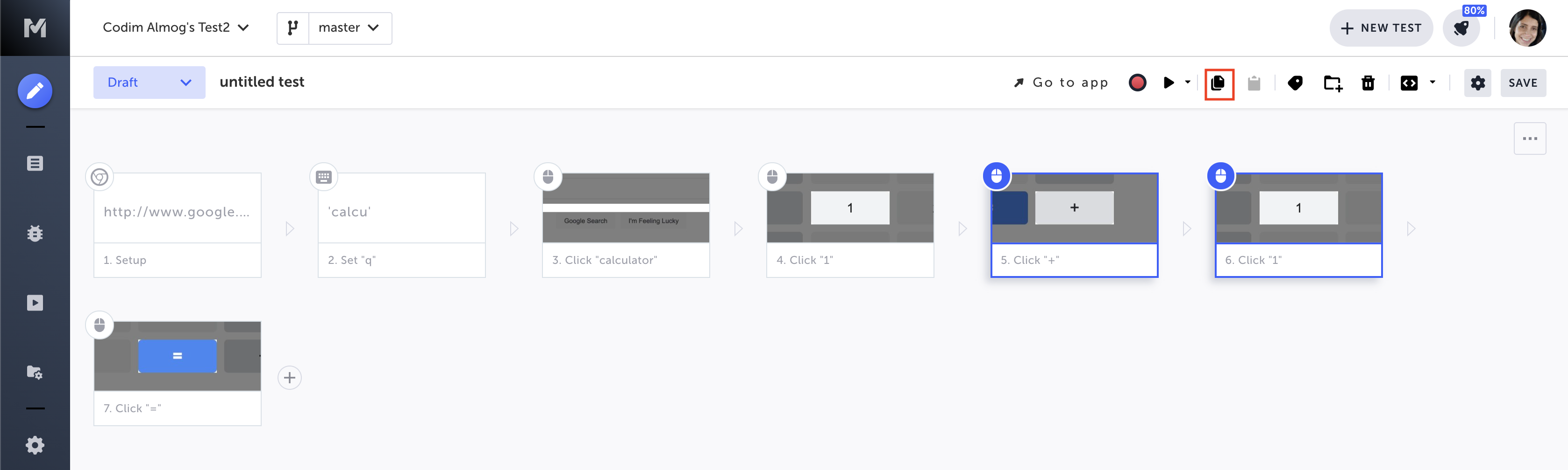 While the steps are selected, click the Copy icon (in the top bar).