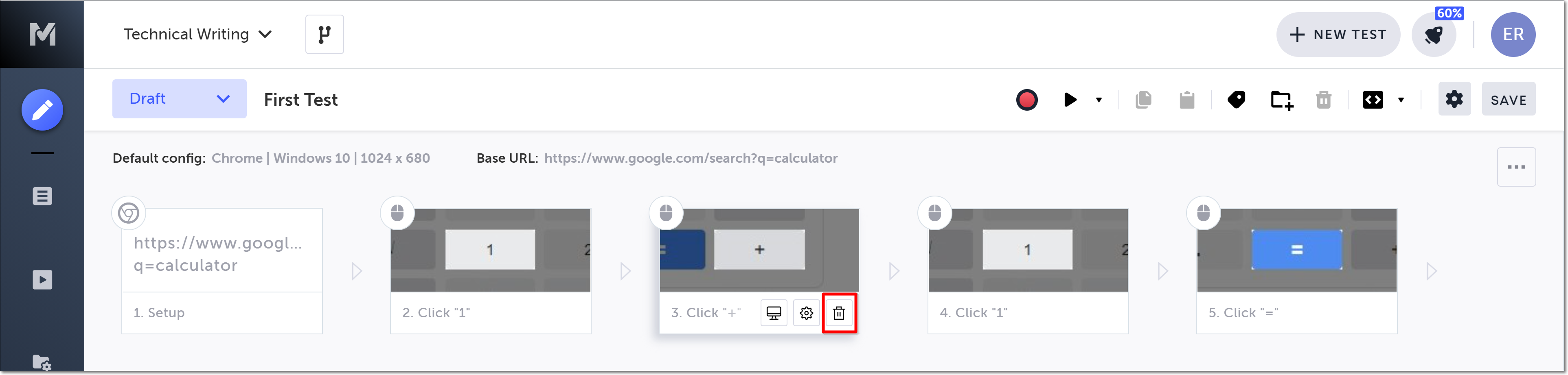 Hover over the step and then click on the Delete step icon.