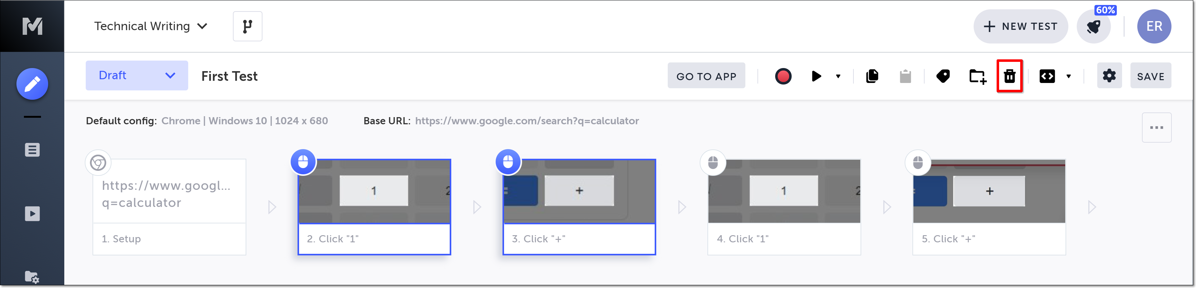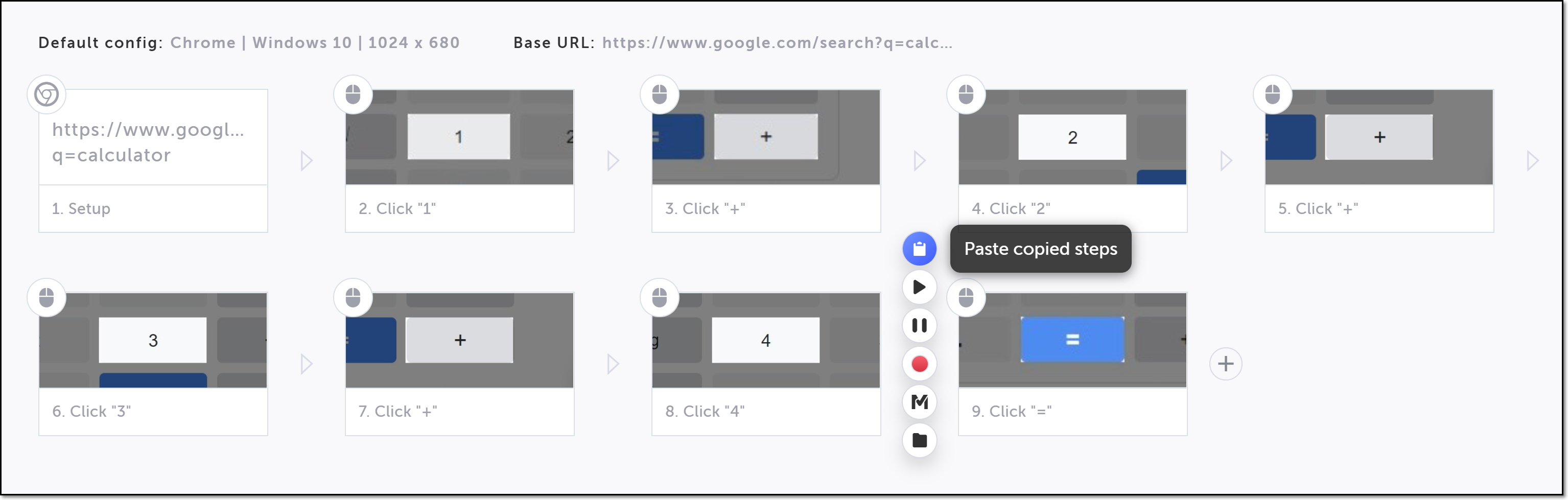 Note: If you click the paste button in the action menu without selecting a location, the step will be pasted to the end of the test.