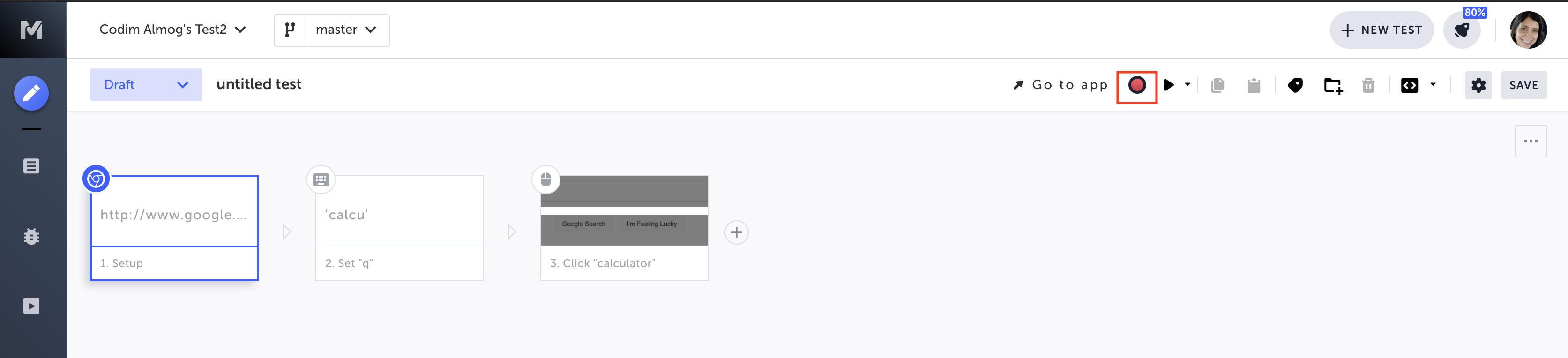 Click on the red circle (Record actions here).