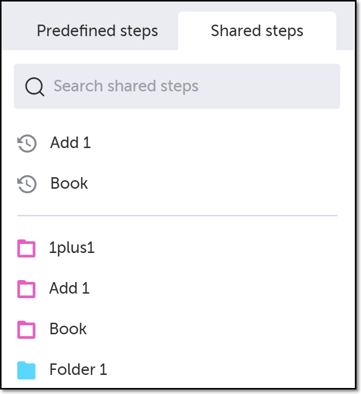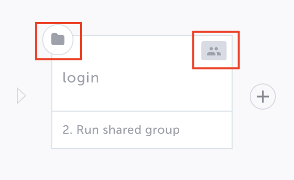The steps are grouped into a single group step. If the group is shared between tests, a Shared indicator icon is displayed.
