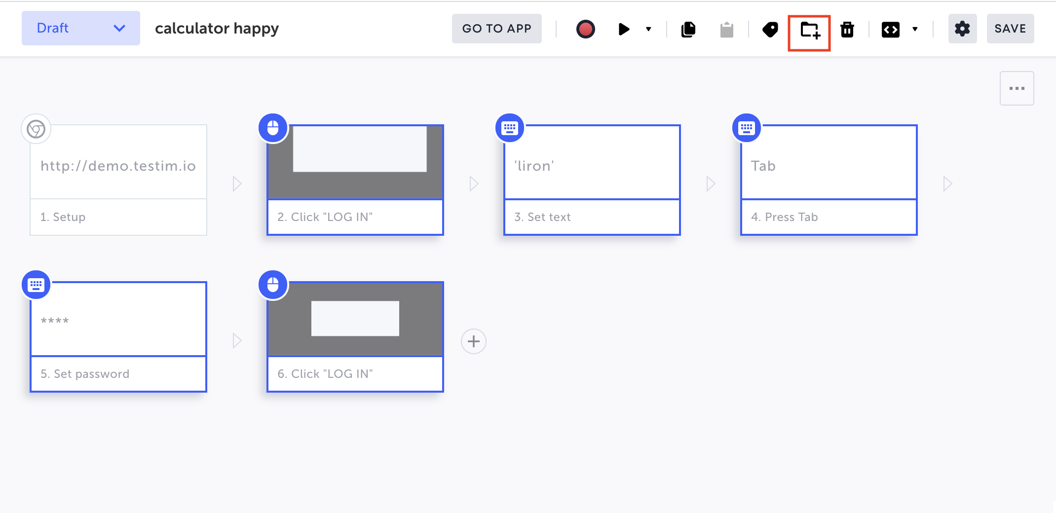 "Reuse" is one of the more basic principles of programming. Instead of copy-pasting the same twenty lines of code over and over, you write them ONCE inside a method and call it whenever you need to. This principle works precisely the same in the world of automated testing, by grouping steps together and then making these groups available to be called from other tests in your project. Even if you don’t share groups between tests, you can still improve the organization of your tests, by using them to reduce the number of steps presented in the Visual Editor. In addition to sharing groups, there are some steps that can be shared without the need to group them with other steps. For more information, see Shareable Steps.