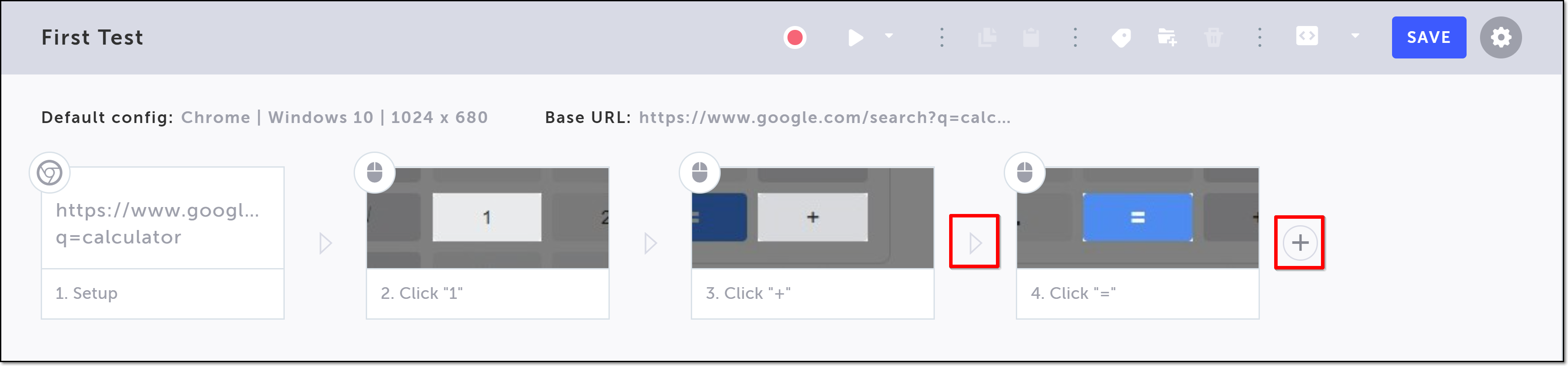 In the other test, hover over the > (arrow symbol) between two steps, or the + (plus symbol) after the last step.