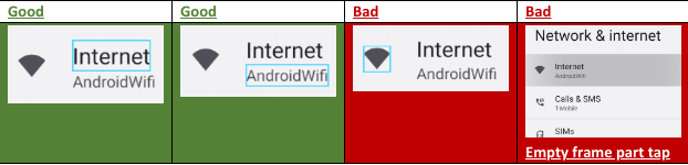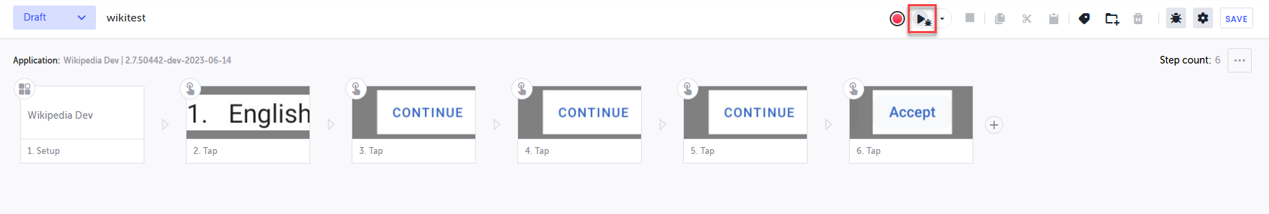 Tap - simulates a user tapping an element on the mobile device screen. To create this step, click the mouse on the AUT Viewer screen during recording.