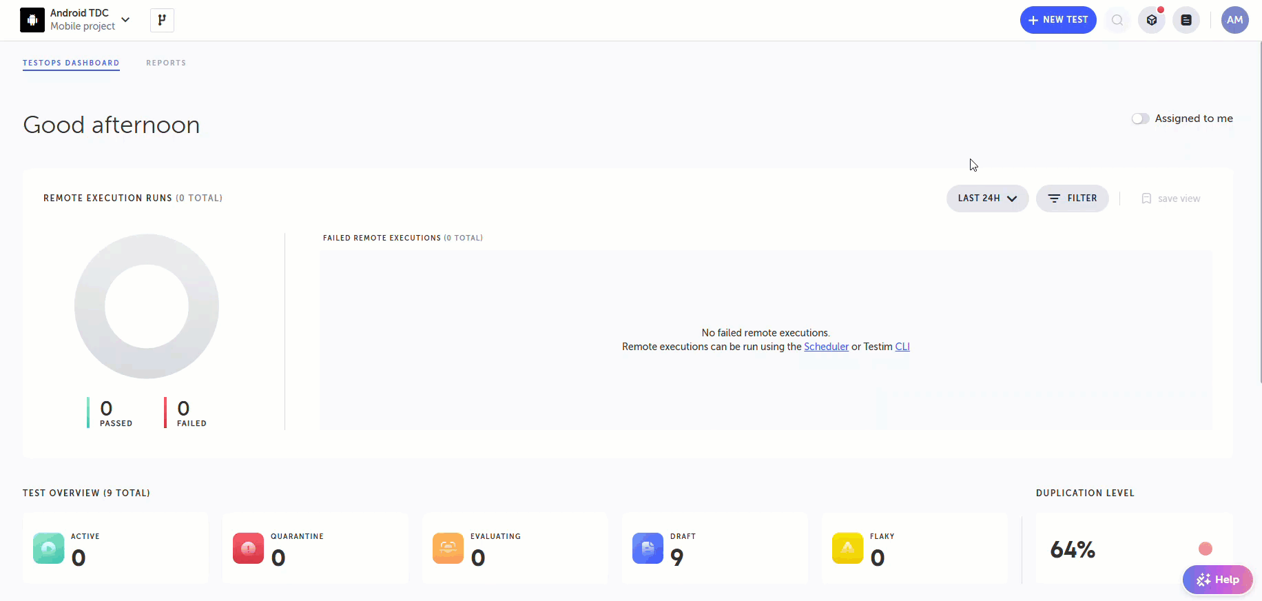 Note: Each project is assigned to a single mobile operating system. A separate project is required to create/run tests on different operating systems. For example, you cannot create a test for an iOS device if the project was created for Android.