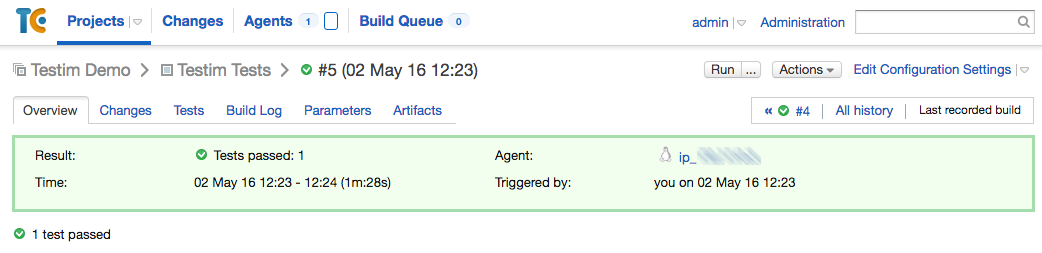 In order for TeamCity to store, analyze and show the results, Testim generates a unique TeamCity report format which is automatically recognized: