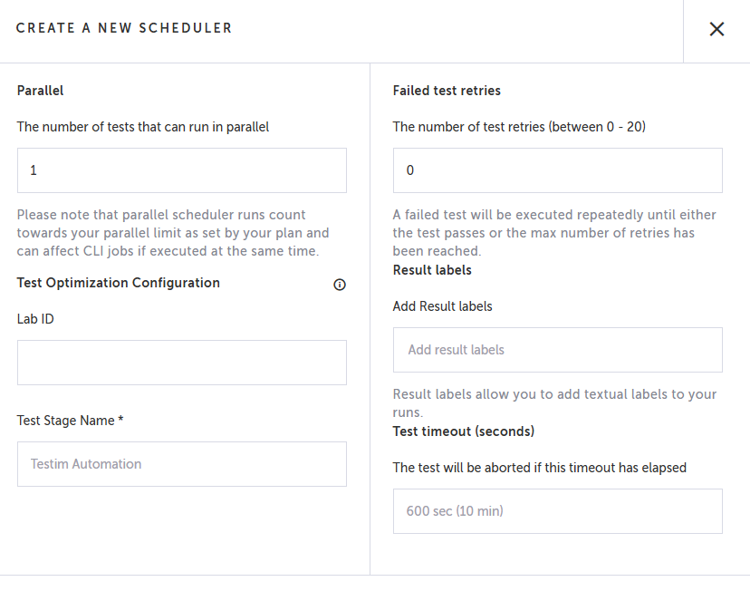 Scheduler - by entering the Sealights labId to the Lab ID field in the Advanced section.
