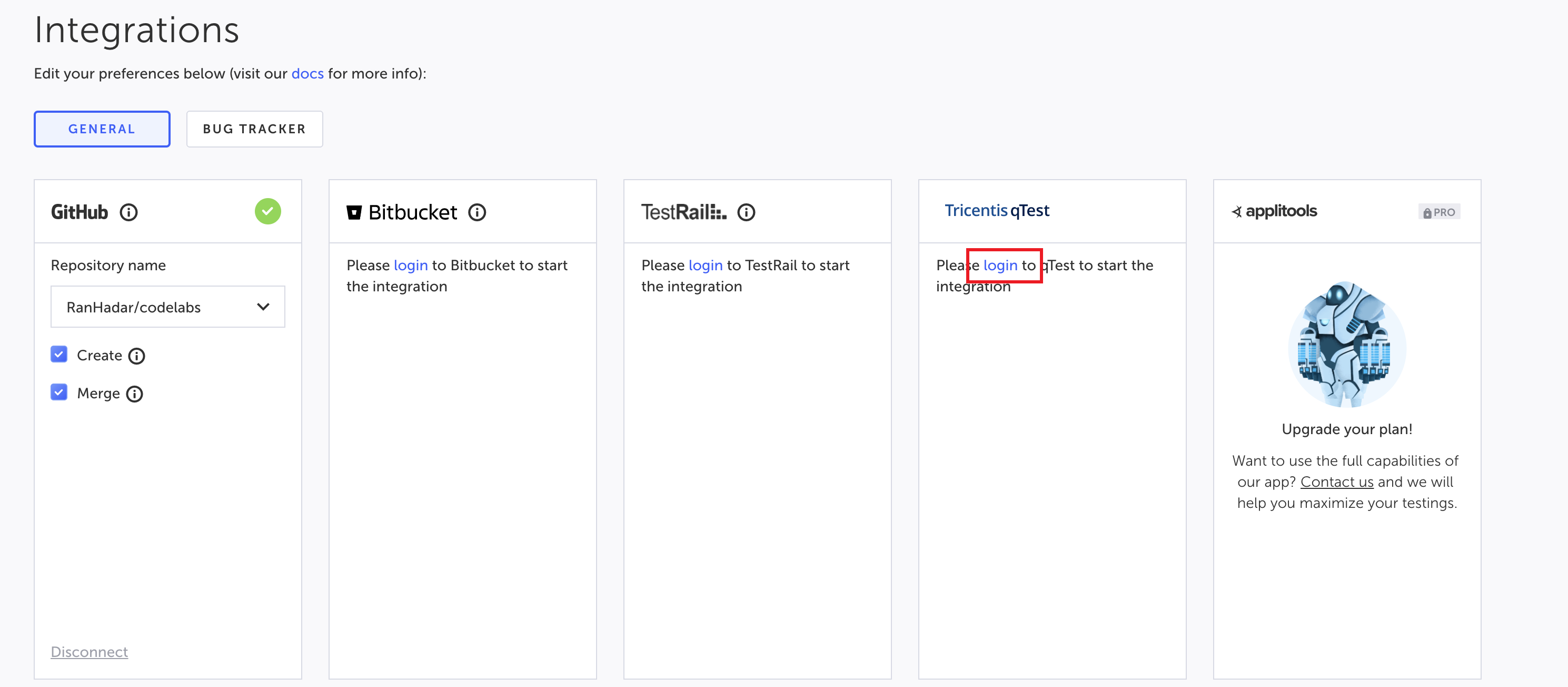 Before using the qTest and Testim integration, you will need to connect Testim to the desired qTest project. This process is required only once. → To connect Testim to qTest: