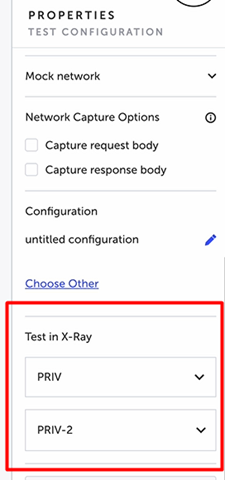 In the setup step's Properties panel, under Test in Xray, select the Xray project from the first drop-down menu and then the specific test from the second drop-down menu. There can be multiple mapped test cases