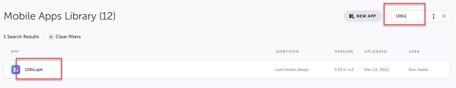You can search for a mobile app by name in the Mobile Apps Library. → To search for an app in the Mobile Apps Library: