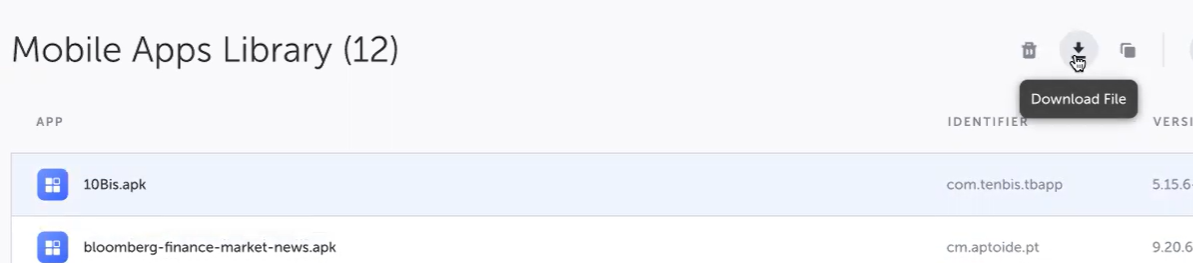 Select an app from the list of mobile apps and click the Download File button.