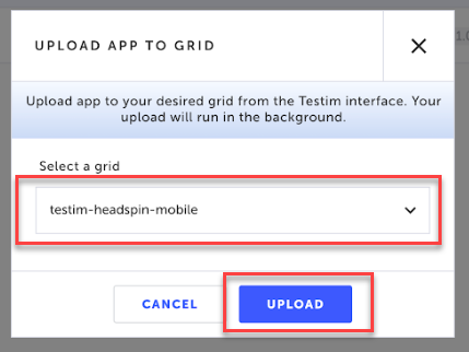 Testim will upload your app to the selected grid.