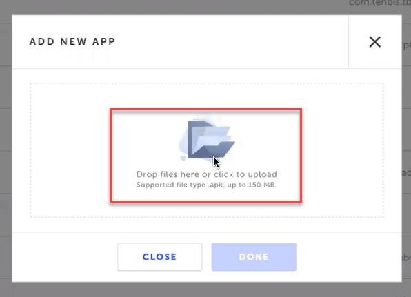 Select an APK/IPA file or drag and drop the file from your local computer onto the upload window. Only one file can be uploaded each time.