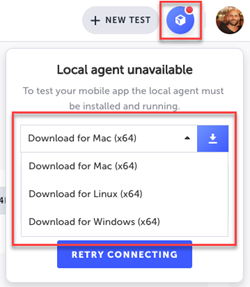 On Testim, click the Tricentis Mobile Agent icon at the top.