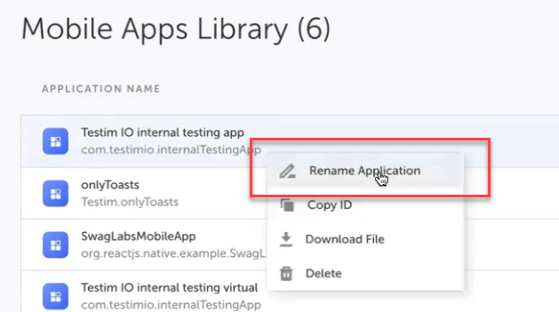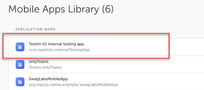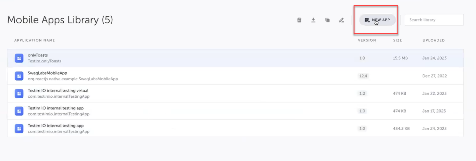 In Testim, navigate to the Mobile Apps Library and click the New App button.