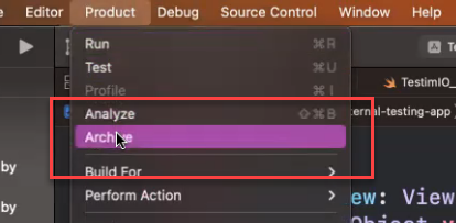Once the build is complete, click Product > Archive in the menu.