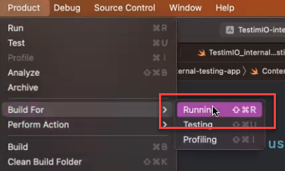 Click Product > Build For > Running in the menu.