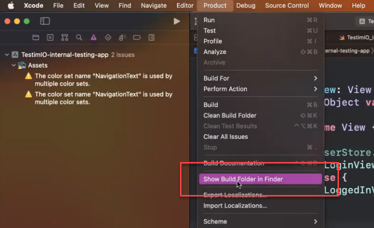 In Xcode, navigate to Product > Show Build Folder in Finderto open the file folder where the build was created.