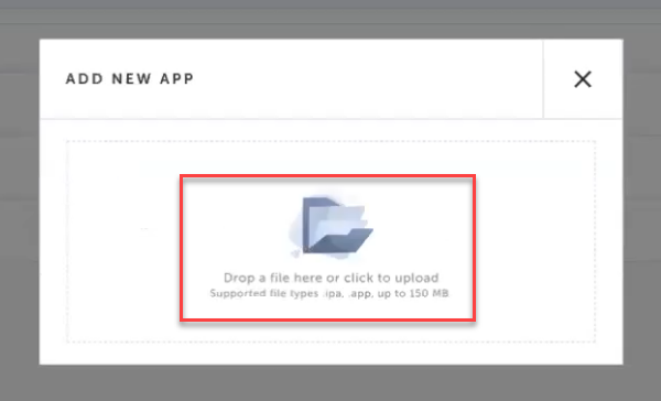Browse for your internal-testing-app.app file on your computer, or drag and drop the file onto the file upload dialog box.