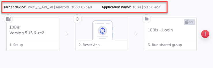 Target Device: displays the configuration information of the device that is currently used for the recording/playback session, including information about the target mobile device, operating system, and display resolution.