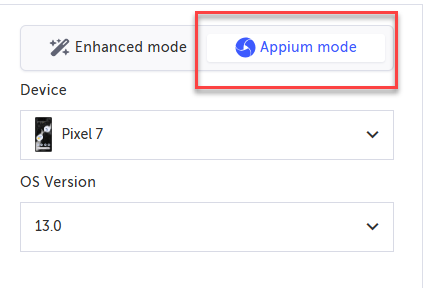 Appium mode - This mode guarantees the compatibility of your test with other Appium-based grids and supports local executions on your local devices. On the other hand, this mode is restricted to Appium's capabilities, meaning that you might not be able to record all your test flows, especially if you use a hybrid app or webviews. Note that existing tests will still work if you are using Appium Compatibility mode.