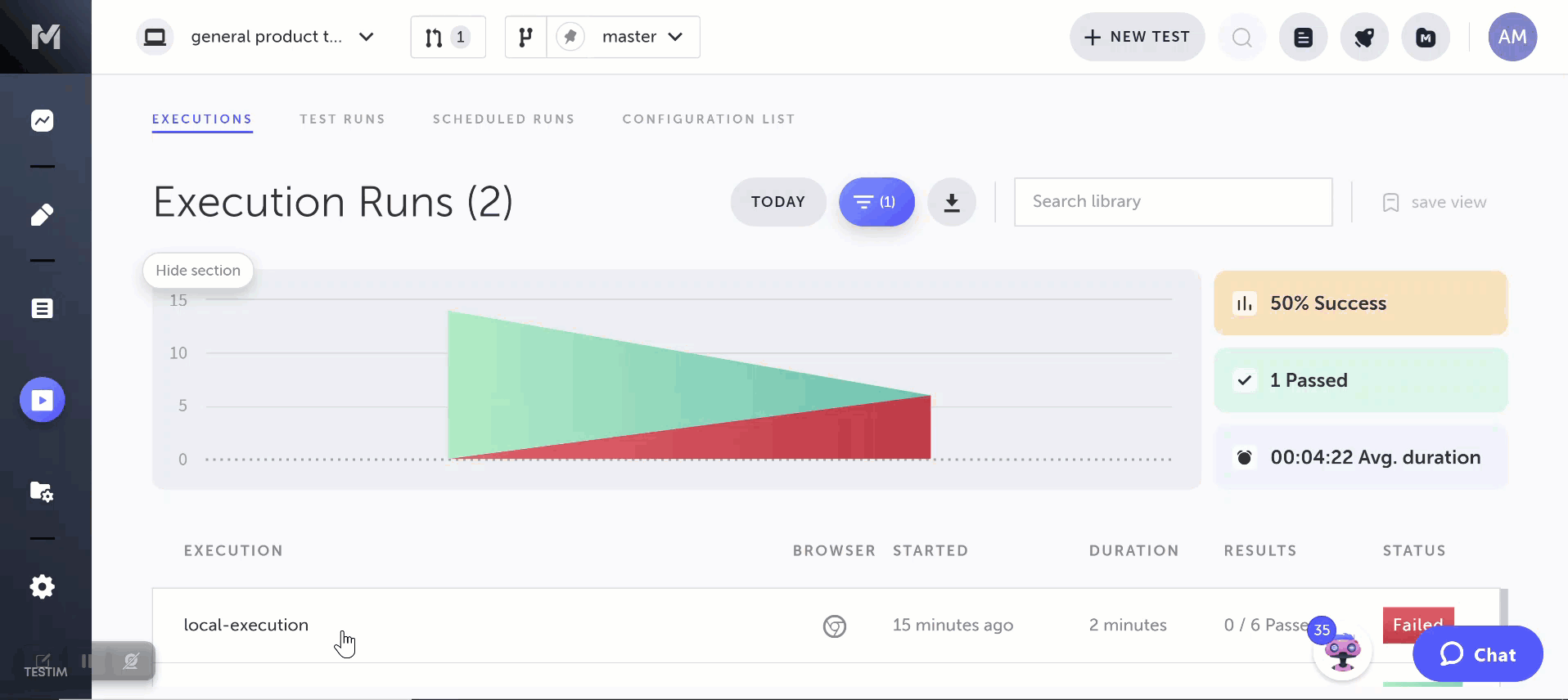 Click Result to view the Result screenshot, which was taken when the test was last ran and failed.