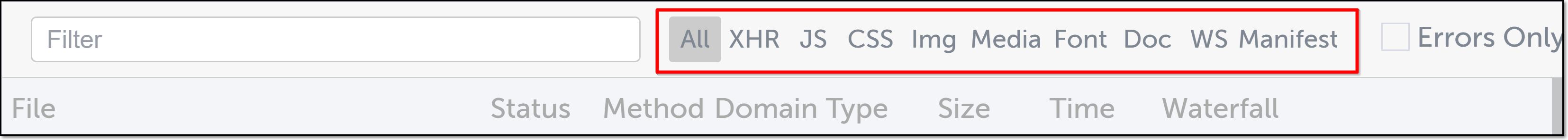 Filter based on the request type - select on of the lister request types (e.g. XHR, JS, CSS, etc.)