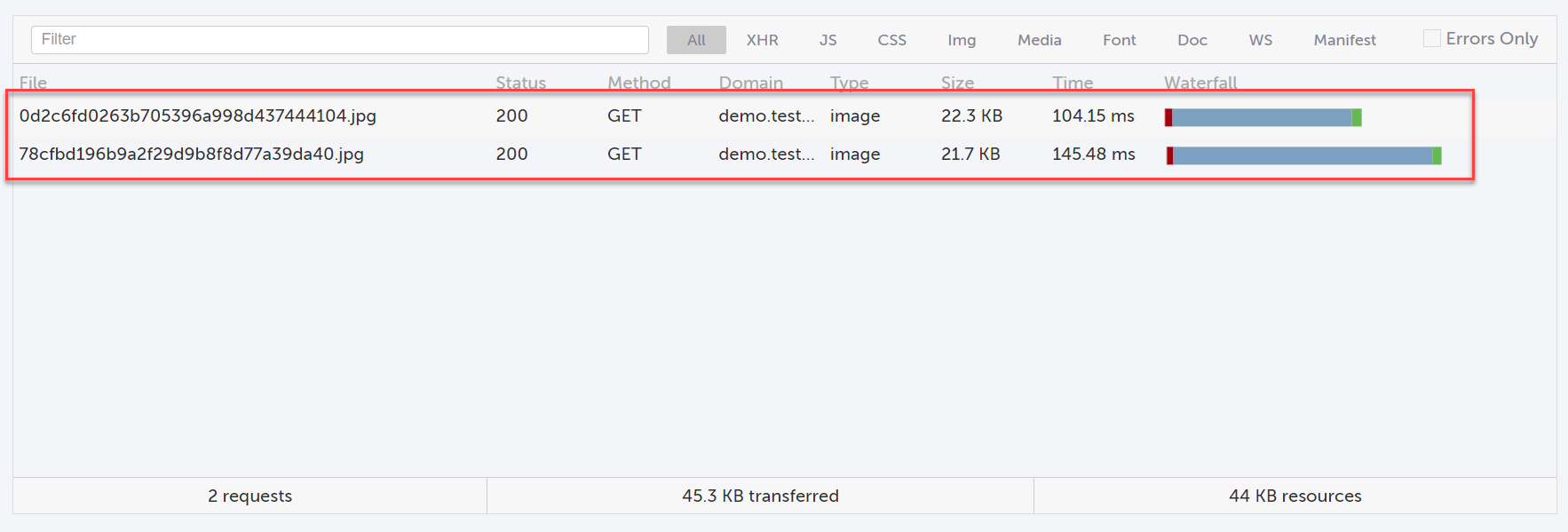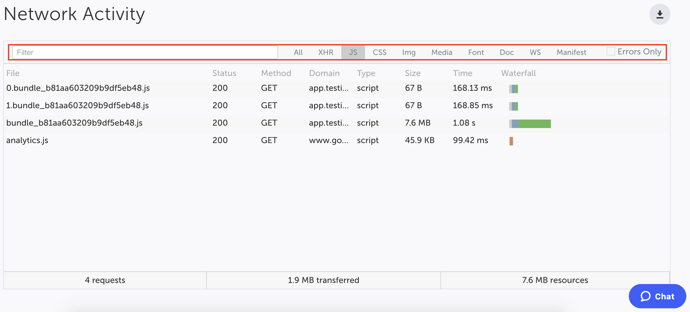 You can filter your results by filename text, domain, type, and errors. → To filter by filename text and domain: