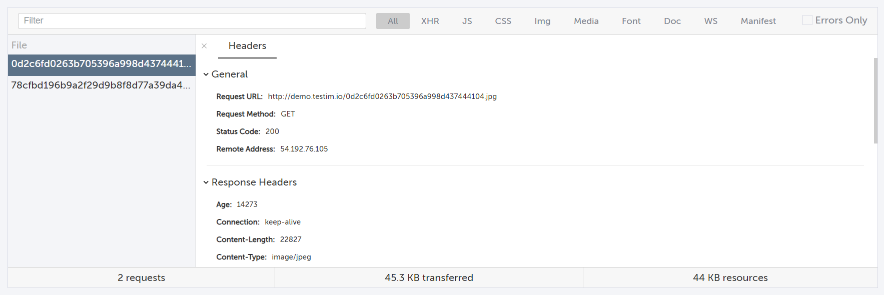You can filter your results by several elements. Clicking on a request reveals the HTTP headers associated with that request.