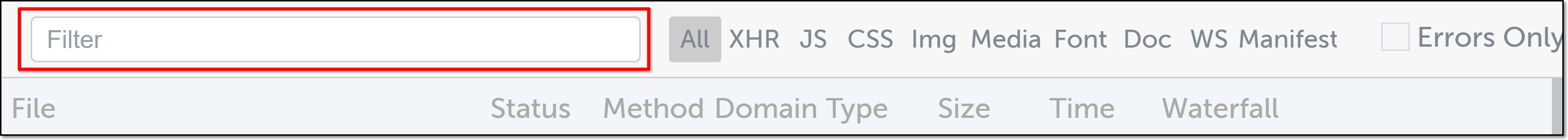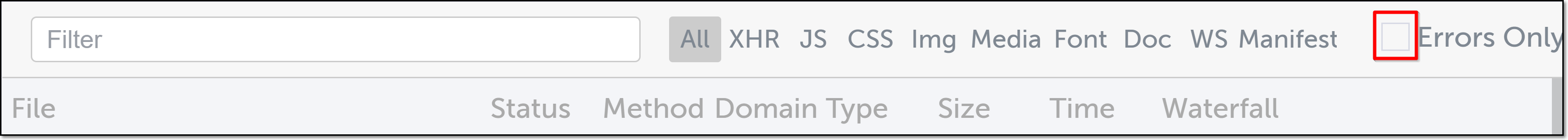 Error only filter - select the Error Only checkbox to see only requests that were responded with an error.