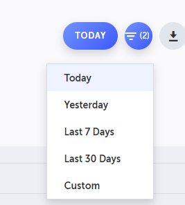 Click the filter and select one of the predefined options or Custom to specify a specific start and end date.