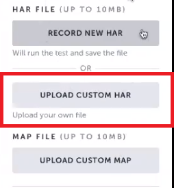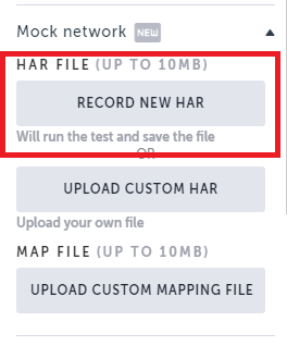 Click Record New HAR. The test will run locally and the HAR file will be created automatically.