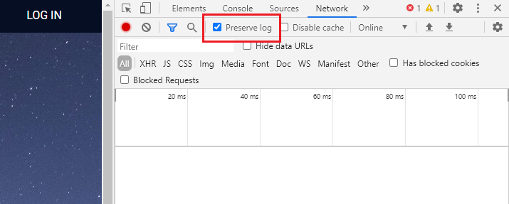 Record the log by selecting the red circle at the top left of the Networks tab.
