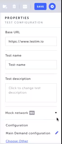 After saving your test (See How to Record a Test), click the Properties (:fa-cog:) icon. The Test Properties pane is displayed: