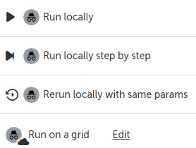 Run locally step by step – a new browser window opens and runs the test one step at a time.