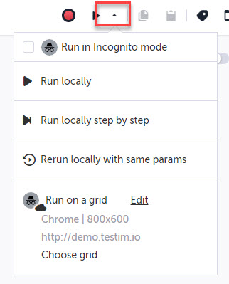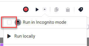 You can run local or remote tests in Incognito mode in your Chrome browser. → To run a test in Incognito mode: