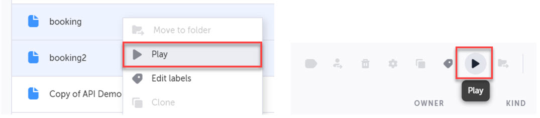 Right click on your selected tests and click Play from the right click menu or click the Play icon from the actions menu.