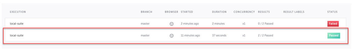 You will see a list of the tests and their results marked “local-suite” indicating the tests have run locally.