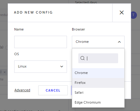 For new config, you can select which browser you would like the scheduler to run on.