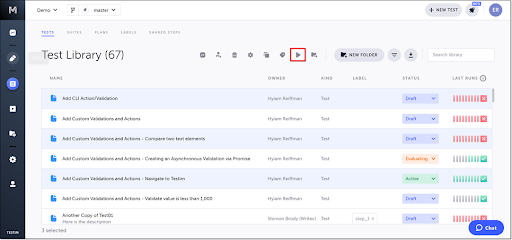 Running a single or multiple tests through the Test List on Testim UI (web only)
