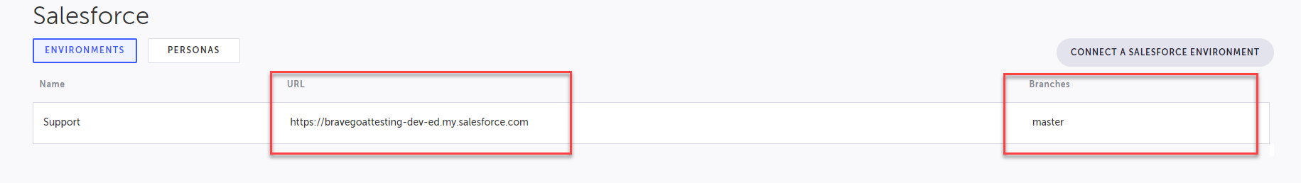 In the Salesforce environment field, select a Salesforce environment from the drop down menu