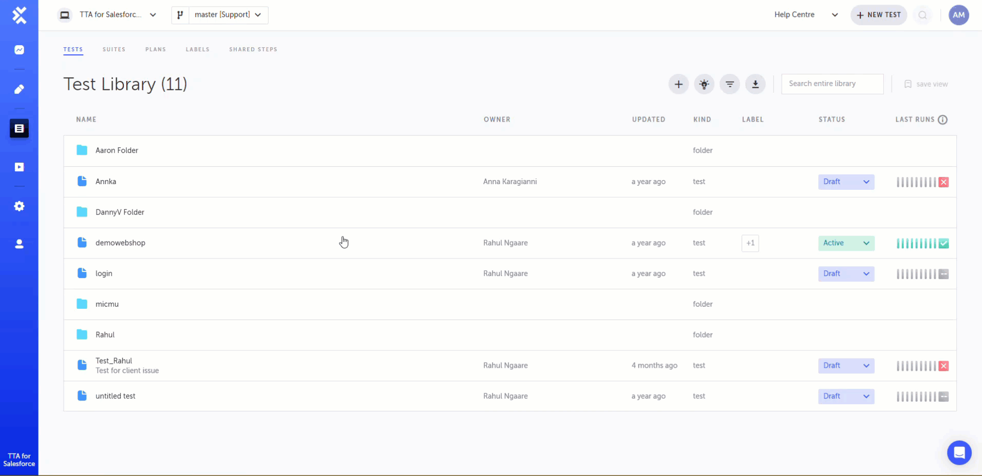 In Testim for Salesforce, in the branch search dropdown, select the branch you want to merge.