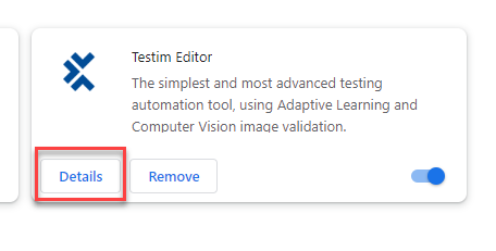 In the Testim Editor extension, click Details.