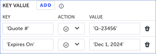 The following example will extract the value in the PDF that comes after the Quote # key and store it in a variable called quoteNumber.