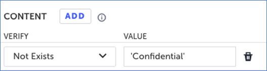 In the Value field, enter the string that you want to validate its existence or non-existence.