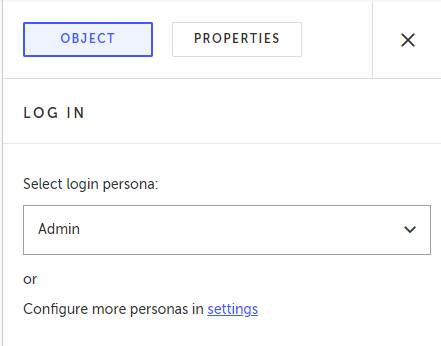 The Log in step logs into Salesforce using the selected Persona. All Salesforce Steps, except the steps under the API Operations category, require you to be logged in to the Salesforce environment. → To add a Log in step: