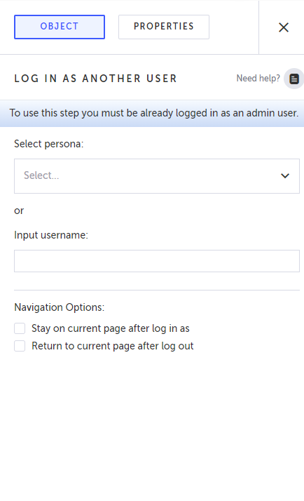 →To add a Log In As Another User step: