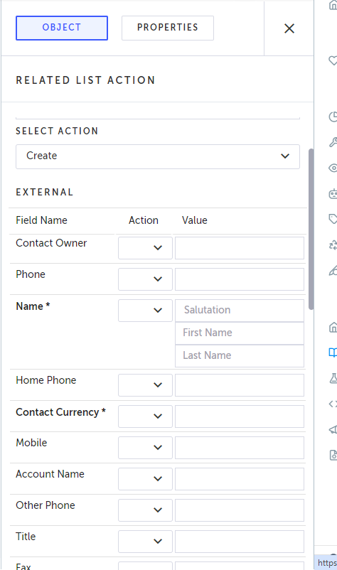 Click the Select the Object drop-down menu and select the desired object type. The object type determines the type of object of the record for which you want to add a related list object to (primary object). In the example above, this object would be the Contact.