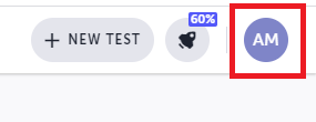 In another tab open Testim Automate and click the user icon, located in the top-right corner.