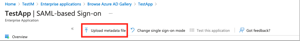 In the Testim tab, under IDENTITY PROVIDER (IDP) METADATA, click Upload File and select the Federation Metadata XML file.